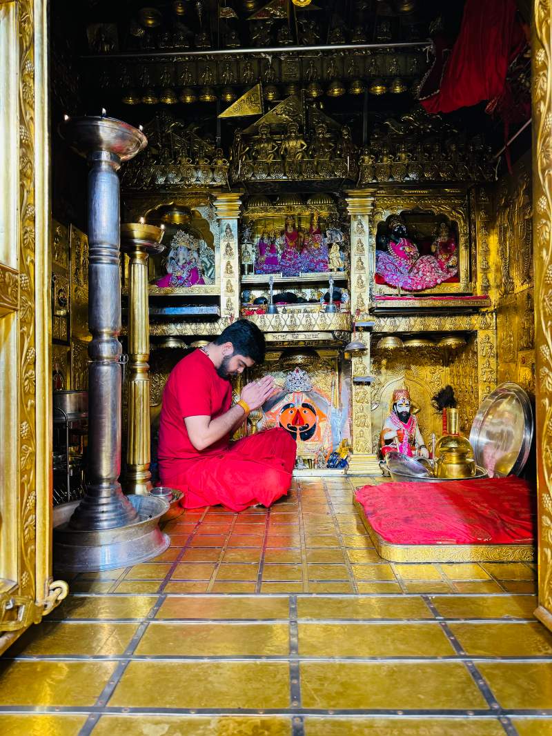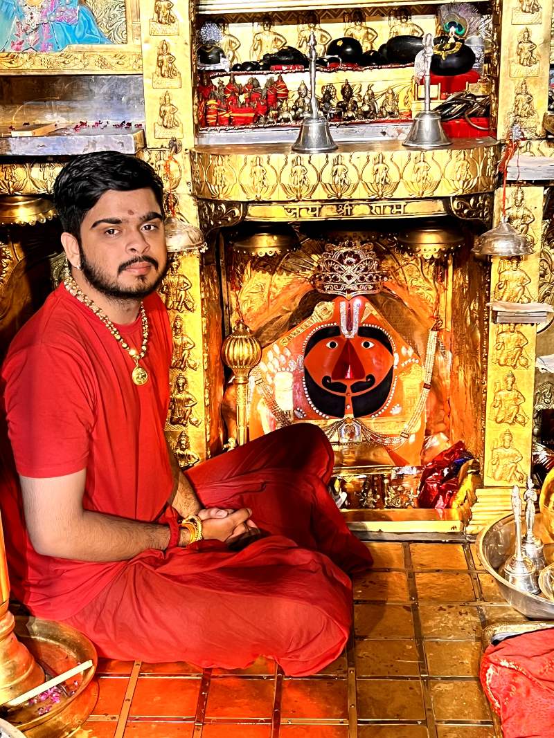 The great devotee of Shri Hanuman, Shri Mohandas Ji Maharaj, entrusted the seva (service) of Shri Balaji Maharaj to his nephew Udayaram Ji, appointing him as the first priest of the temple. Before taking samadhi, Mohandas Ji offered heartfelt prayers to Shri Balaji, seeking blessings for his sister Kanhi’s son Udayaram Ji and his descendants—so they may continue the worship with devotion, lead a righteous Grihastha Jeevan (householder’s life), and be blessed with long life.